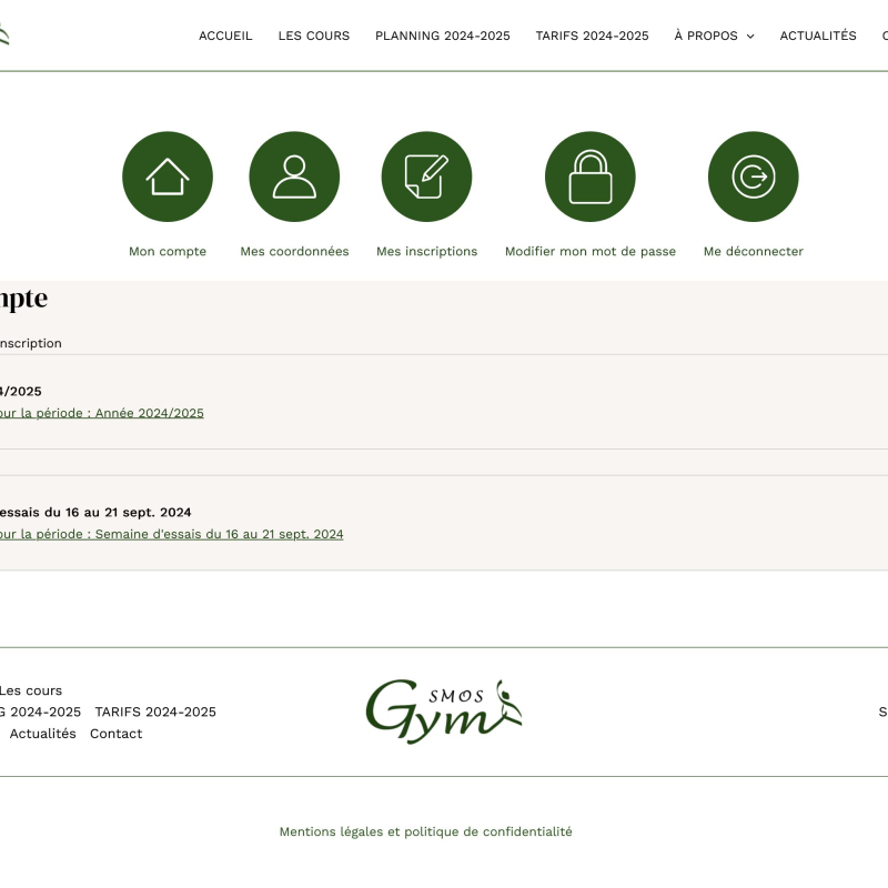 Portail d’inscription SMOS Gym