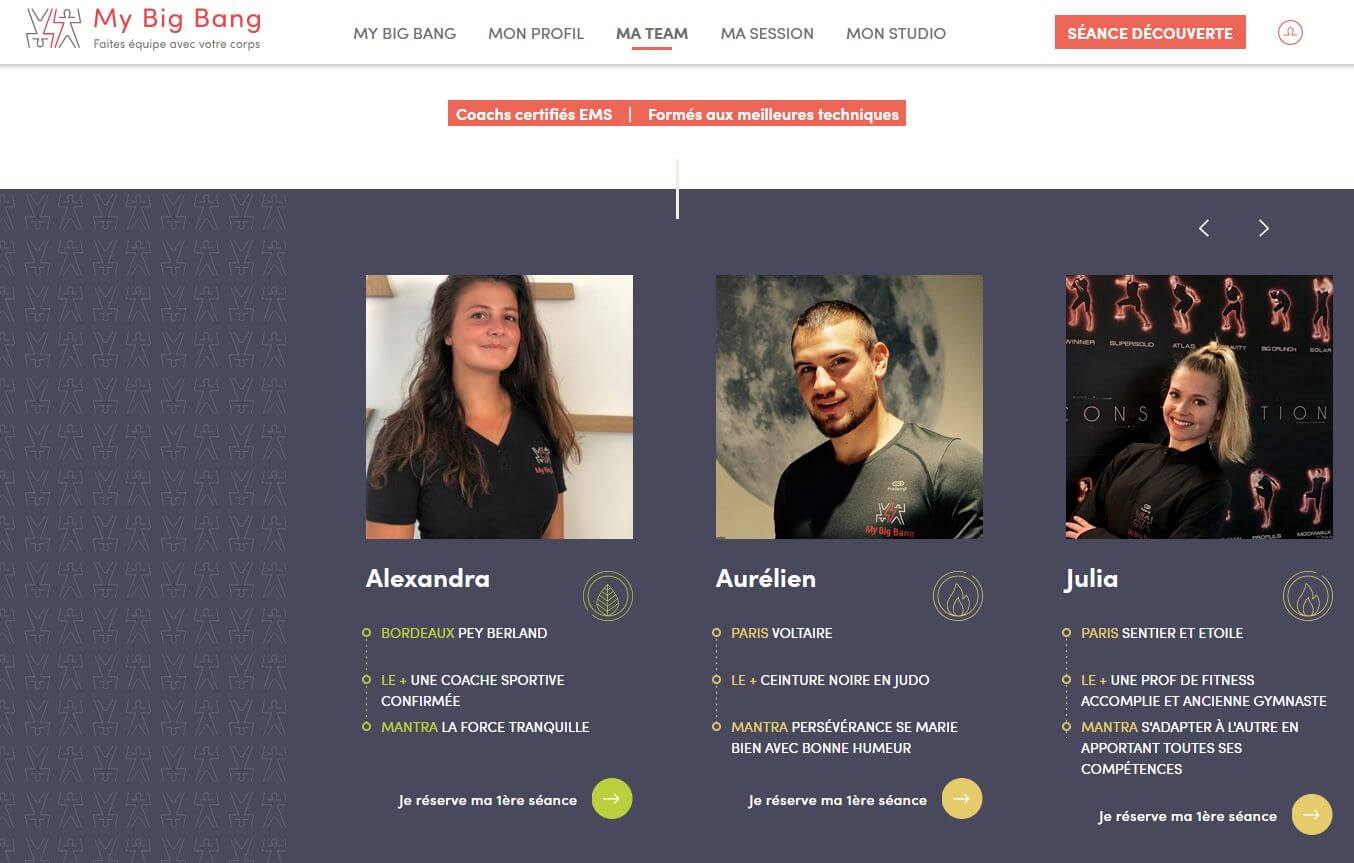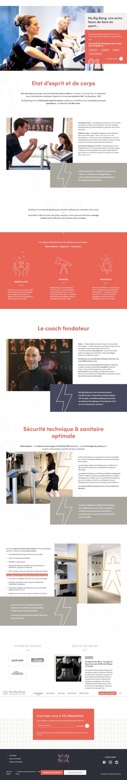 My Big Bang propose une méthode de coaching sportif et bien-être par électrostimulation, dans ses studios situés dans plusieurs villes. Une refonte en profondeur de son site WordPress a été réalisée en 2020.