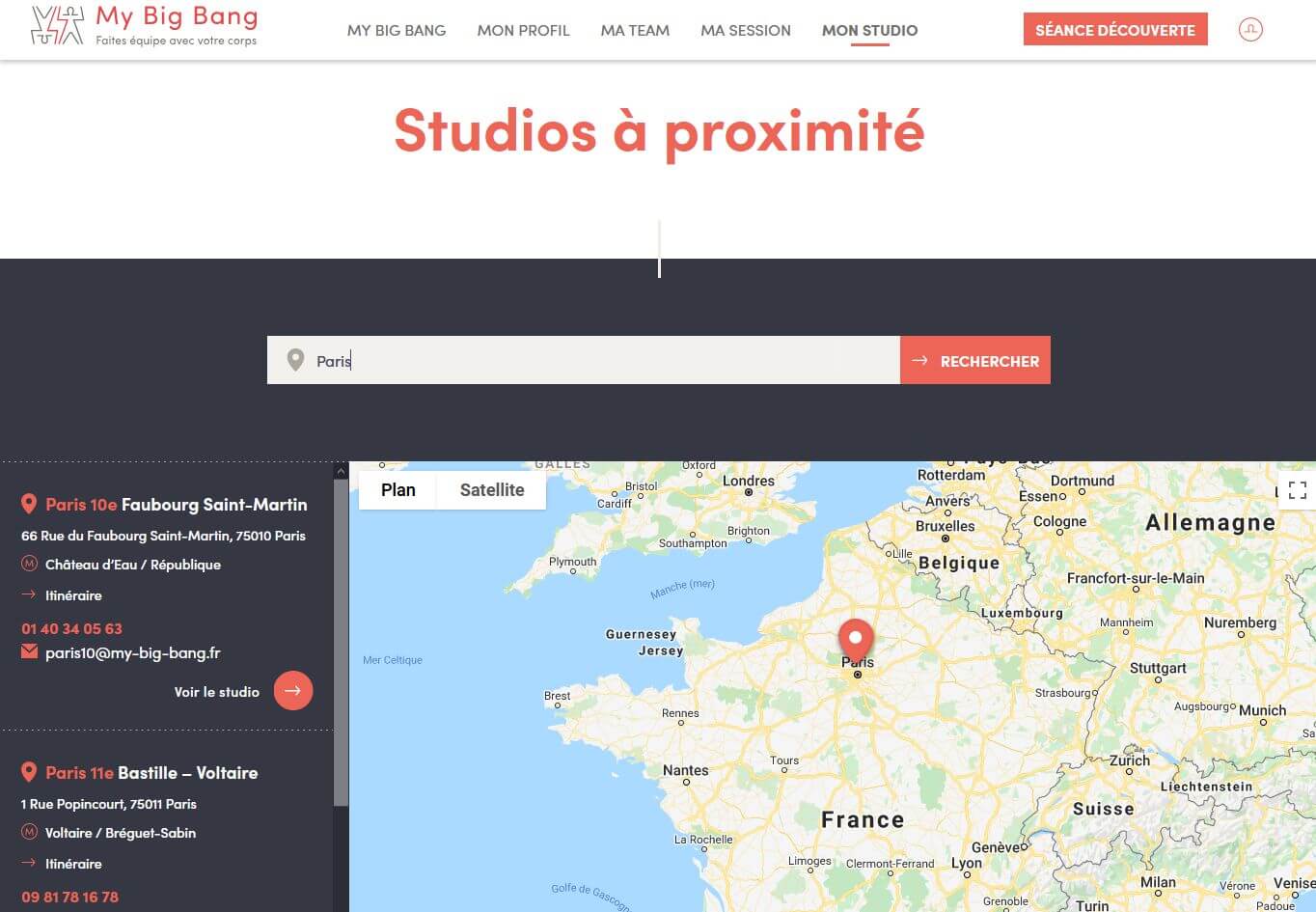 - carte filtrable des studios